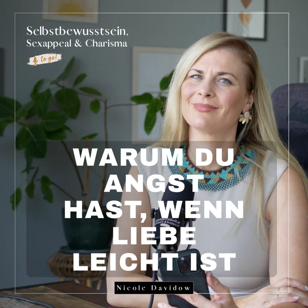 Hallo, schön, dass du hier mit dabei bist bei deinem Podcast Selbstbewusstsein, Sex Appeal und Charisma To Go. Ich freue mich, dass du da bist, dass wir jetzt hier miteinander Zeit verbringen. Mein Name ist Nicole Davido und heute habe ich wieder eine ganz wundervolle High Value Woman mit an Bord. Sie hat mir eine Sprachnachricht geschickt mit ihrer Frage und es geht um die Liebe, es geht um Beziehungen. Es geht darum, dass wenn wir uns dann den Traummann manifestieren, oft unser Quacci im Kopf am Morg läuft und wir alles hinterfragen, nach Fehlern suchen und glauben, oh, ist das das jetzt? Und werde ich jetzt hier genug leiden, so der Subtext, vor allem wenn es leicht ist, weil Liebe leicht, was? Nein, so viele von uns verbinden Liebe einfach mit Leid, mit Schmerz. Und das ist irgendwie so schade, weil auf der anderen Seite wünschen wir uns ja irgendwo diese Traumbeziehung und dann gleichzeitig sind wir aber auch so, oh, lass uns dann uns eher in die Menschen verlieben, die vielleicht gar nicht erreichbar sind und dann ist auch einmal jemand erreichbar und dann sind wir so, what, what, what? Also, steigen wir heute ein. Ich erzählte ja auch, wie das bei mir war mit Marc, mit meinem Mann, weil ich habe ja auch meine Dating History und habe ja auch im Endeffekt meinen Traummann manifestiert.